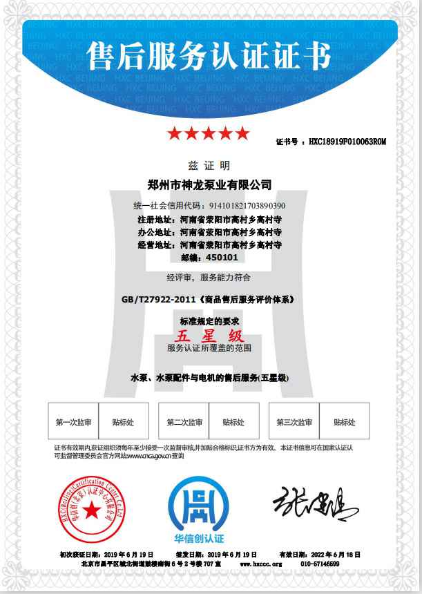 祝贺开云网页版·网站官网-开云(中国)获得水泵、水泵配件与电机的五星级售后服务认证。